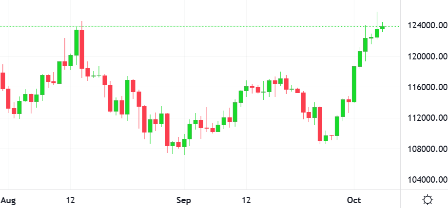 Bitcoin, the world’s largest cryptocurrency by market value, hit a record high, crossing $125,000 for the first time in history. Bitcoin’s previous record was $124,480 in mid-August, buoyed by friendlier regulations from U.S. President Donald Trump’s administration
