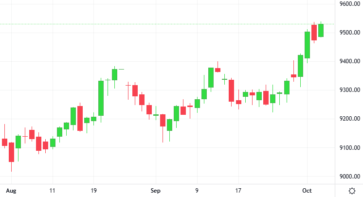 London’s FTSE 100 fell, although it touched another record high during the session, dragged down by losses in healthcare and energy stocks, while Tesco shares climbed after the supermarket giant lifted its annual profit outlook.