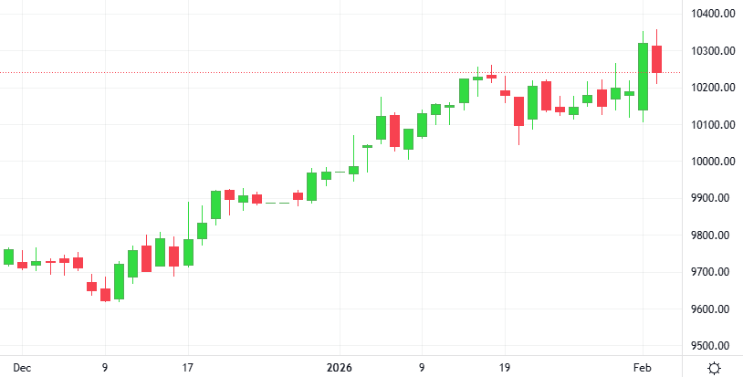 The UK’s FTSE 100 closed at a record high as investors piled into financials and defensive pharma stocks amid a global selloff in energy and metal shares. The blue-chip FTSE 100 index losed up 1.1%, rising for the third straight session.