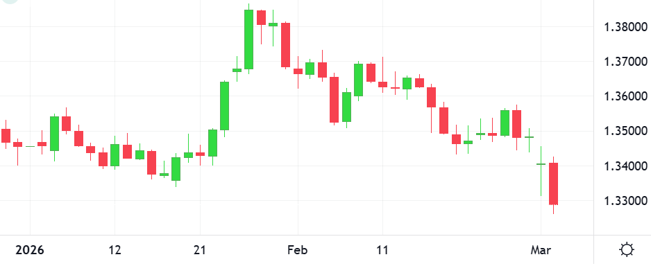 Sterling hit a 2 and a half month low against the dollar and edged down versus the euro, as the Iran conflict sent investors into safe‑haven assets while concerns over the Bank of England’s policy path weighed on the British currency.