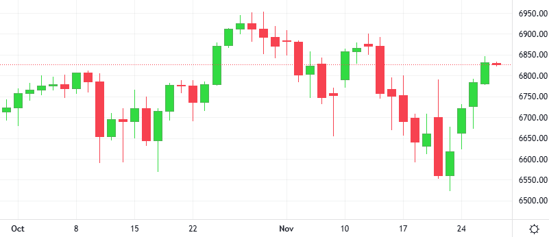 Wall Street’s main indexes rose for a fourth consecutive session, as investors doubled down on bets the Federal Reserve will cut interest rates in December. Tech stocks were in the lead following AI-server maker Dell’s strong forecasts, helping the S&P 500 and the Nasdaq touch two-week highs.